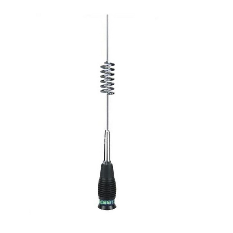 Antenă cu montare pe un suport magnetic. Baza montează radiatorul cu un conector de tip PL. Cablul antenei se termină cu o mufă radio CB.