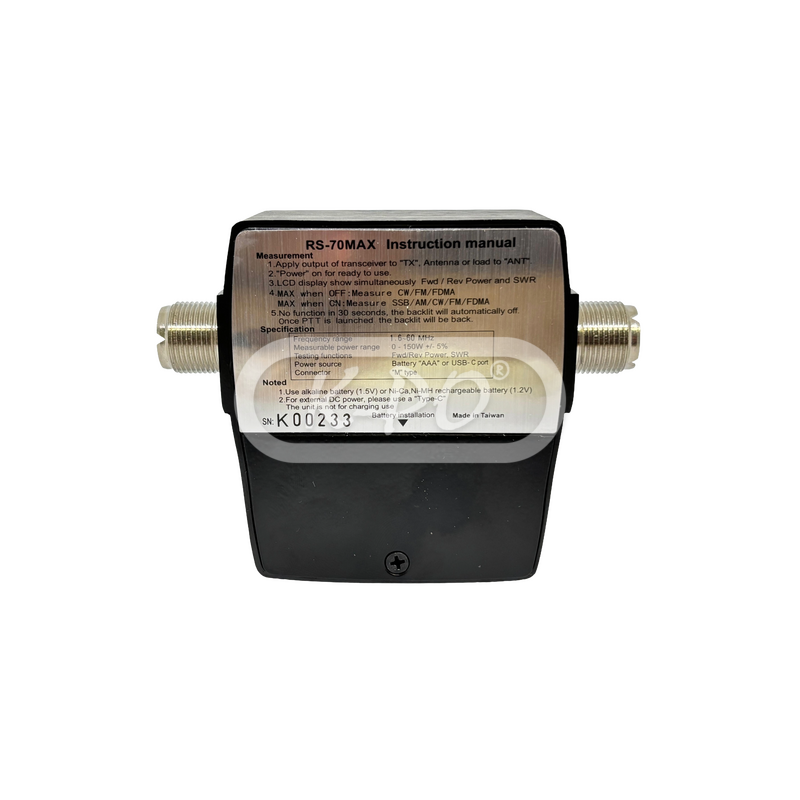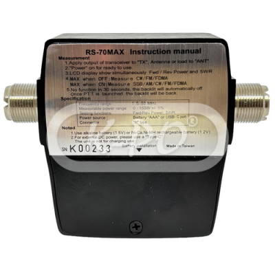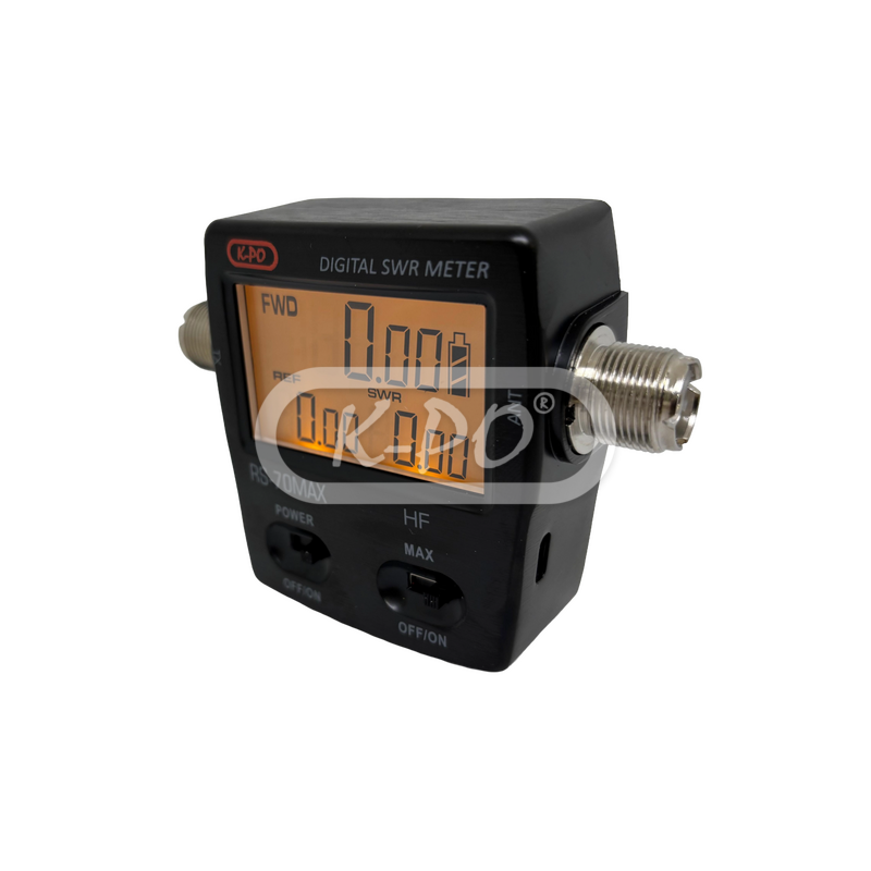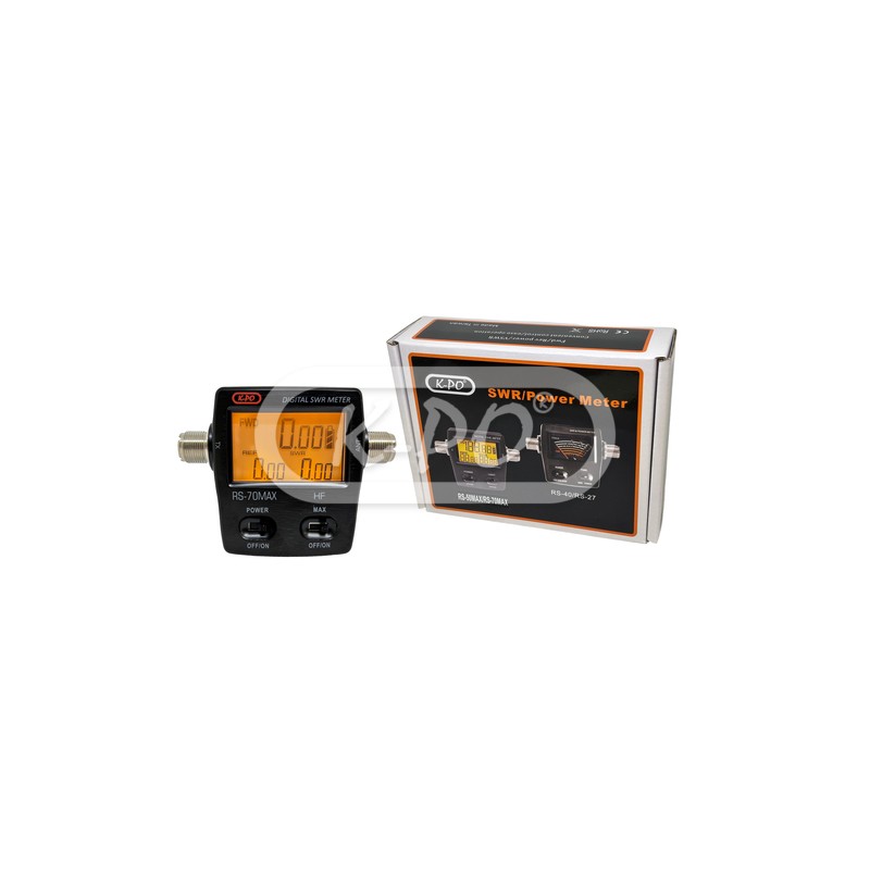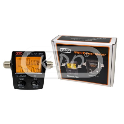 K-PO RS-70MAX este un aparat compact pentru măsurarea SWR și a puterii, cu un ecran digital LCD clar, pentru frecvențele 1,6–60 MHz. Pe ecran se pot citi simultan SWR, puterea înainte (Forward) și puterea reflectată (Reflected). Este compatibil cu modulațiile analogice și FDMA, iar măsurarea puterii se poate face până la 200 Wați.