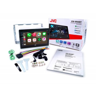 JVC KWM560BT este un sistem multimedia auto 2 DIN cu ecran tactil capacitiv de 6.8" conceput pentru a conecta smartphone-ul la bordul mașinii și a îmbunătăți experiența infotainment în timpul condusului. Suportă Apple CarPlay și Android Auto prin conexiune USB, oferind acces simplificat la hărți, muzică, mesaje și apeluri fără a distrage atenția de la condus.